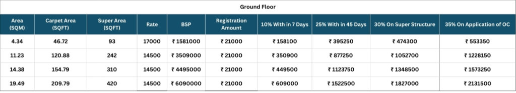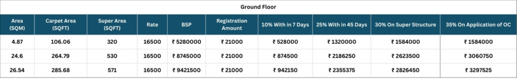 • EDC/IDC: RS. 408/sq.ft.
